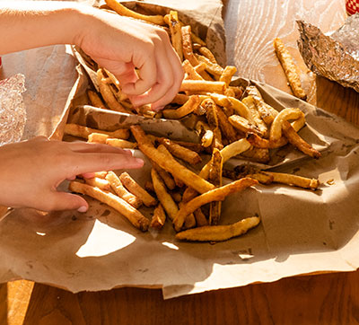When we say our food is handmade, we mean it. Our beef is hand-pattied and fries are cut right in the store. Each morning, our talented crews tear lettuce by hand, carefully chop onions, thinly slice green peppers and jalapeños, and much more.